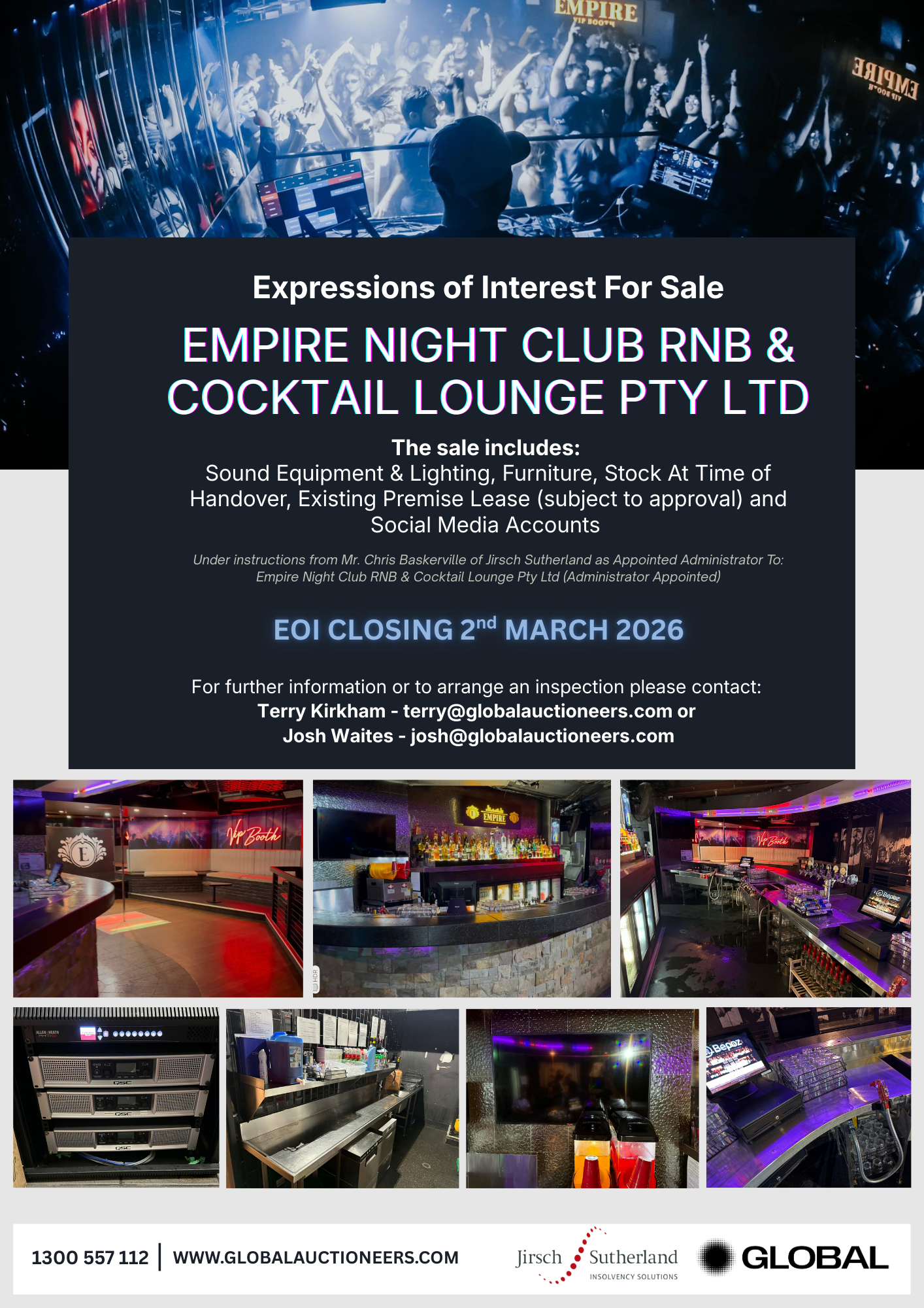 Take a closer look at the business assets and equipment on offer in action. The auction opens: 9AM, 19 Feb 2026. Contact us if you'd like further information.